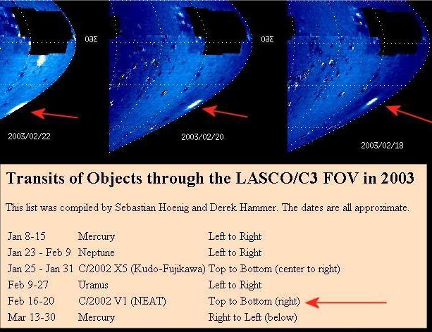 Comets do pass through SWAN, as shown by C/2001 V1 passage in 2003. The moving object in November 2004 has been identified as C/2003 K4. However, a stationary bright orb remains unidentified.
