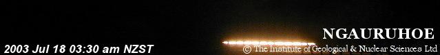 The White Island, New Zealand cam shows, predawn [Jun 24], a very red sky! What is that red? This is an inactive caldera, but at target="_top">1:00 AM and target="_top">4:00 AM the sky is red well before the target="_top">Sun Rises. ‘Images of White Island from the volcano camera situated at Whakatane, New Zealand.’ http://www.geonet.org.nz/whakatane.html