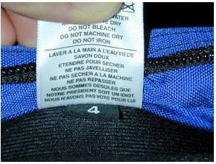France. Heres the translation of the French part of the label: Wash with warm water.