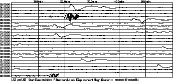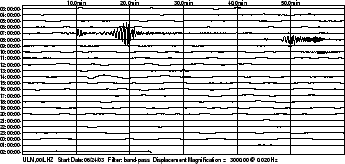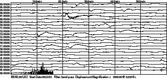 Predicted stretch zone adjustments occurred at the end of June 24, when the Atlantic Rift was at the Dark side of the globe, away from Planet X. Note that from Harvard to Florida and over to Missouri and Indiana, in the Bermuda and Puerto Rico, and in Brazil, the minor Global Quake preceeded by 20 minutes the onset in other stretch areas that reacted, such as Zambia and Gabon, and sites in the compression zone such as the Aleutians and Galapagos. Most sites in the compression zone such as Mongolia and Australia were unaffected. A pattern of strong quakes in the compression zone at the Face point, when the Atlantic Rift is facing Planet X, with adjustments in the stretch zone later, is developing.