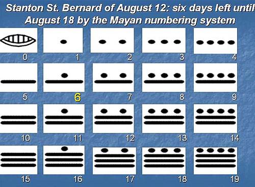 A crop circle widely interpreted to be the Mayan symbol for the number 6 appeared in Stanton, St. Bernard, on August 12, 2007.