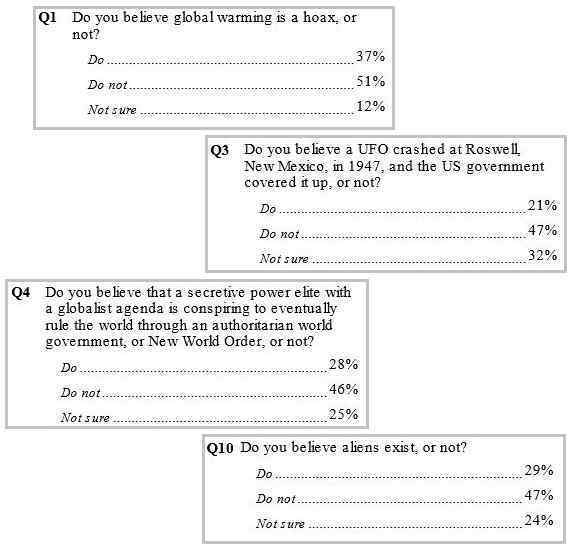 Roswell was a crashed ship and 29% stated that aliens exist.