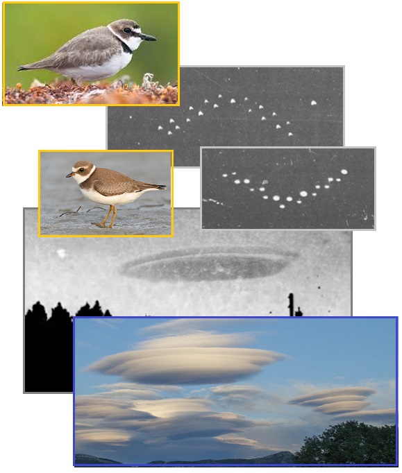Project Blue Book was operational for a time (1952-1969) during the long history of the cover-up over the alien presence. Its goal was to debunk any and all sightings that the public might document or claim. The excuses for any actual UFO sightings were laughable – swamp gas, satellites or airplane lights, mass hysteria, or a hoax. Now that disclosure is being pushed and many countries are opening up their files, some of the Blue Book archives have been made available to the public. The Daily Mail recently featured a couple of them, notably explainable in non-alien terms. One was clearly of a flock of birds, as the white spots in the formation are of different and irregular shapes, and another is a lenticular cloud. Real UFO’s are apparently not to be forthcoming from the US Blue Book files, at least not yet.
