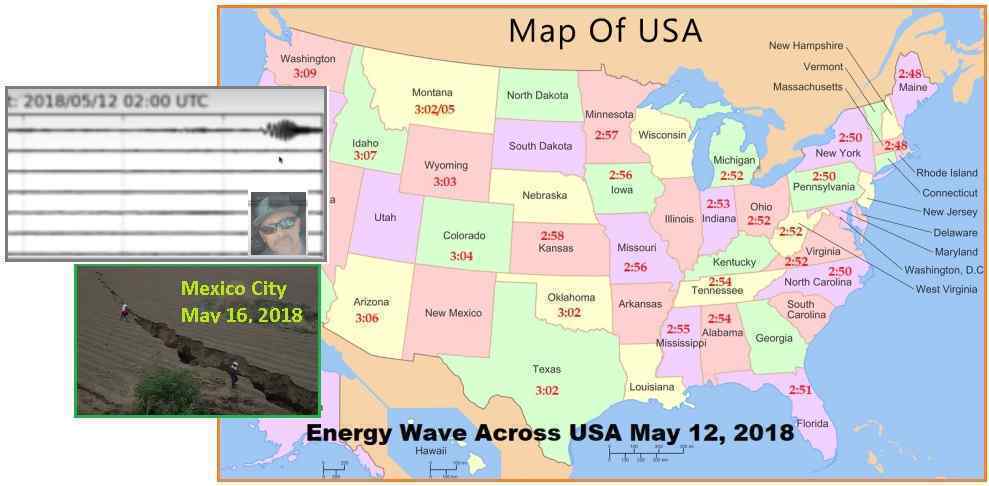 According to a YouTuber who calls himself MrMBB333, seismographs show that beginning at around 2:48 AM on Saturday, May 12, 2018, a wave of energy went from America’s east coast to the west coast in 21 minutes.