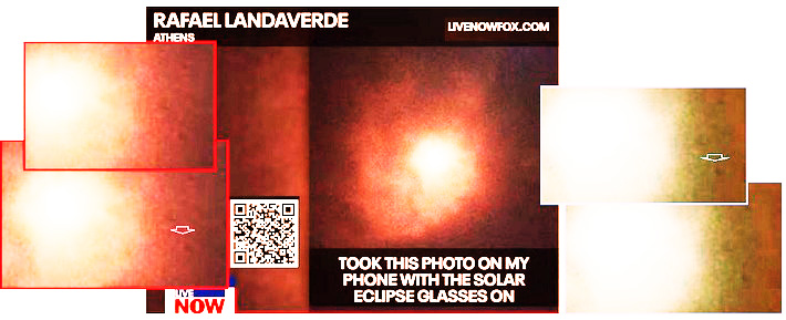 From the start of the Eclipse day what was obvious were the many Moons in the vast tail of Nibiru. When they showed up along the Corona they were round and usually pink, but distinctly obvious. NASA reacted to this visibility by reducing what could be seen on their live stream to two colors – orange and black. When asked what all the pink below the Sun was by TV talking heads, NASA had no answers. TheRealPax Live Stream available earlier in the day did not play those games. Thus a photo from Pennsylvania showed pink Moons.