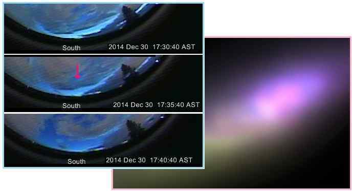 Would the Zetas care to comment on this photograph, captured from the Grumpy Moose website in Alaska tonight (12-30-14)? The object was moving retrograde, going below the horizon by 7:40 pm. It is important to note that this particular webcam was down for three weeks in December, and not due to any inclement weather. Also, the nearly neon blue glow that occurs there more often than not, along