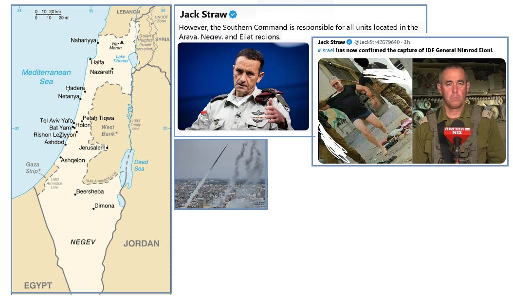 Israel false flag stuff it's so obvious. Yet those who are into zionism et will defend Israel. Along with the fact they have run out of money (fiat). Sounds a bit like a 'end times' tactics. [and from another] 5 things to Know about the Hamas Militant Group's Unprecedented Attack on Israel October 7, 2023 https://www.yahoo.com/news/war-5-things-know-hamas-155317030.html In an unprecedented escalation, armed Hamas fighters blew up parts of Israel's highly fortified separation fence and strode into Israeli communities along the Gaza frontier. [and from another] At least 300 Dead, Israeli PM Netanyahu Declares 'War' after Hamas Terrorists launch Massive Attack October 7, 2023 https://www.foxnews.com/live-news/hamas-attack-israel-war Hamas militants have infiltrated Israel in an unprecedented attack, firing more than 3,500 rockets at residential areas from the Gaza Strip. At least 300 people were killed in the terrorist attack and hundreds more were wounded, according to Israel's national rescue service. [and from another] https://twitter.com/JackStr42679640/status/1710936390073299283 #Israel has now confirmed the capture of IDF General Nimrod Eloni. [and from another] https://twitter.com/JackStr42679640/status/1710944323876077671 #BREAKING - Unconfirmed...Hamas now announces the capture of the commander of the southern region in the Israeli army, with no name stated whatsoever. However, the Southern Command is responsible for all units located in the Arava, Negev, and Eilat regions. Its commander is Major General Herzl (Herzi) Halevi. [and from another] https://x.com/GalG____/status/1710936542347231535?s=20 Many Israelis served in the IDF and special forces as you know. We all have serious questions about what was going on yesterday, and very little information. We can’t really understand this while we’re still under attack, but the questions are serious and they WILL BE ASKED. [and from another] ???? Israel-Hamas War - An Update October 7, 2023 https://efrat.substack.com/p/israel-hamas-war-an-update Israel has one of the most advanced and high tech armies, how come there was zero response to the border and fence breaching?? I served in the IDF 25 years ago, in the intelligence forces. There’s no way Israel did not know of what’s coming. A cat moving alongside the fence is triggering all forces. So this?? What happened to the “strongest army in the world”? How come border crossings were wide open?? Something is VERY WRONG HERE, something is very strange, this chain of events is very unusual and not typical for the Israeli defense system.