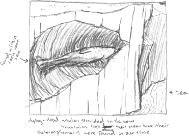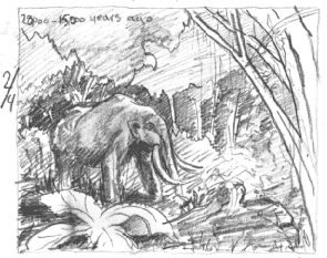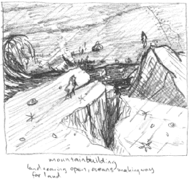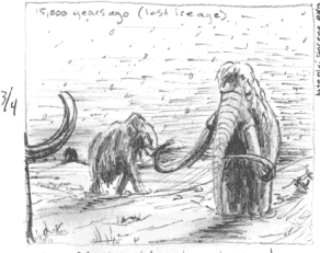 In 2a. we have left the viewer with the unstated but still present question of: What might cause land to shift to another place on earth, letting it end up in another climatic zone? At this point, also, we have made a relationship between the extinction of the mastodons and mommoths and the climatic changes, weather changes and land shifting to another climatic zone in our earth's past.