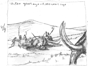 Images/animations of mammoths (glacial planes) and mastodons (forest dwellers) of where they lived, that they died by hunting and (here inserted lead to the answer) suddenly by suffocation by gasses or water (followed by rapid climate change).