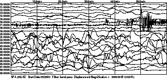 5-6 Июня: К 5 Июня June 5 активное движение на Южном Полюсе (справа) казалось внезапно рассеялось, и стало очевидным возникновение обширного рисунка колебаний Северного полушария, проявившегося к 6 Июня June 6, и расширяющегося вниз от полярного региона к Экватору.