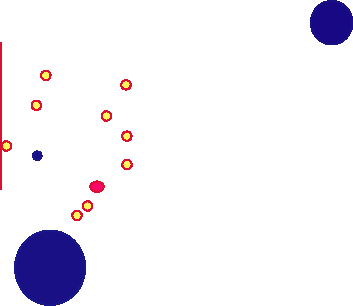 This gif is based on the Pixel tables built from frames 5 to 10. All high intensity or patterns of movement are included.The red line on the left is the side of pixel tables. Some of this maybe debris reflecting light, but the indications are that we have a number of trailing moons and some things preceeding (or the preceeding may just be on that side of PX as it comes closer). The Larger Star below gives great backlighting to the area, which creates enhancement of the objects in tables.