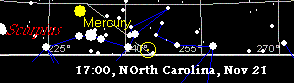 Note this is not the Sun, seen lingering at the right as evidenced by the shadows in the sand. This is looking west from the outer banks in North Carolina. In fact, per Skymap, the sun is dropping below the horizon by 17:00, so has already set! Note that the Second Sun is along the Ecliptic again, dropping to the right after the Sun.