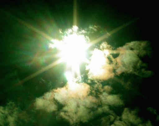 The clouds low in the atmosphere are highlighted by the Sun, but the dust illuminated from the Sun, by the glare of the Sun are not! This is descending dust coming from the direction of the Sun, the dust cloud of Planet X.